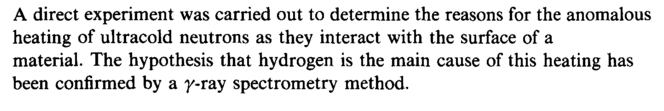 A direct experiment was carried out to determine the reasons for the anomalous heating of ultracold neutrons as they interact with the surface of a material. The hypothesis that hydrogen is the main cause of this heating has been confirmed by a y-ray spectrometry method.