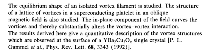 The equilibrium shape of an isolated vortex filament is studied. The structure of a lattice of vortices in a superconducting platelet in an oblique magnetic field is also studied. The in-plane component of the field curves the vortices and thereby substantially alters the vortex-vortex interaction. The results derived here give a quantitative description of the vortex structures which are observed at the surface of a YBa2Cu30^ single crystal [P. L. Gammel et aL, Phys. Rev. Lett. 68, 3343 (1992)].