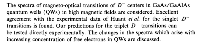 The spectra of magneto-optical transitions of D~ centers in GaAs/GaAlAs quantum wells (QWs) in high magnetic fields are considered. Excellent agreement with the experimental data of Huant et al for the singlet D~ transitions is found. Our predictions for the triplet D~ transitions can be tested directly experimentally. The changes in the spectra which arise with increasing concentration of free electrons in QWs are discussed.