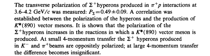 The transverse polarization of Σ+hyperons produced in -π+ρ interactions at 3,6-4.2 GeV/c was measured: Р2=0.49 ±0.09. A correlation was established between the polarization of the hyperons and the production of K* (890) vector mesons. It is shown that the polarization of the Σ+hyperons increases in the reactions in which а ЯГ*(890) vector meson is produced. At small 4-momentum transfer the Σ+ hyperons produced in K~ and 7Γ4" beams are oppositely polarized; at large 4-momentum transfer the difference becomes insignificant.