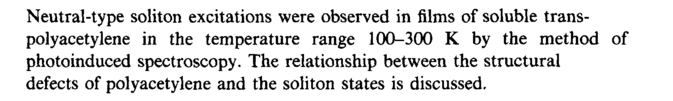 Neutral-type soliton excitations were observed in films of soluble trans-polyacetylene in the temperature range 100-300 К by the method of photoinduced spectroscopy. The relationship between the structural defects of polyacetylene and the soliton states is discussed.