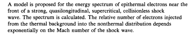 A model is proposed for the energy spectrum of epithermal electrons near the front of a strong, quasilongitudinal, supercritical, collisionless shock wave. The spectrum is calculated. The relative number of electrons injected from the thermal background into the nonthermal distribution depends exponentially on the Mach number of the shock wave.