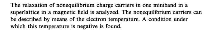 The relaxation of nonequilibrium charge carriers in one miniband in a superlattice in a magnetic field is analyzed. The nonequilibrium carriers can be described by means of the electron temperature. A condition under which this temperature is negative is found.
