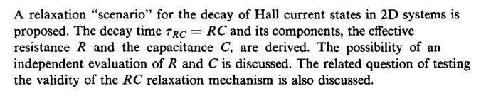 A relaxation "scenario" for the decay of Hall current states in 2D systems is proposed. The decay time trc = RC and its components, the effective resistance R and the capacitance C, are derived. The possibility of an independent evaluation of R and С is discussed. The related question of testing the validity of the RC relaxation mechanism is also discussed.