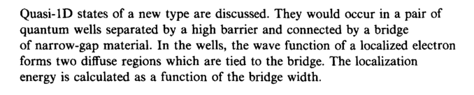 Quasi-ID states of a new type are discussed. They would occur in a pair of quantum wells separated by a high barrier and connected by a bridge of narrow-gap material. In the wells, the wave function of a localized electron forms two diffuse regions which are tied to the bridge. The localization energy is calculated as a function of the bridge width.