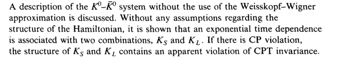 A description of the K°~K° system without the use of the Weisskopf-Wigner approximation is discussed. Without any assumptions regarding the structure of the Hamiltonian, it is shown that an exponential time dependence is associated with two combinations, Ks and KL. If there is CP violation, the structure of Ks and KL contains an apparent violation of CPT invariance.