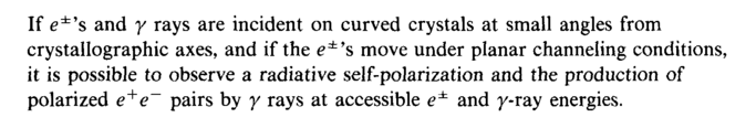 If e±f$ and γ rays are incident on curved crystals at small angles from crystallographic axes, and if the e±9s move under planar channeling conditions, it is possible to observe a radiative self-polarization and the production of polarized e+e~ pairs by γ rays at accessible and y-ray energies.