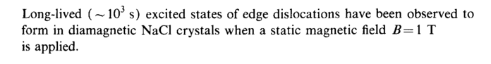 s) excited states of edge dislocations have been observed to form in diamagnetic NaCl crystals when a static magnetic field