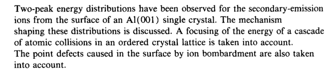 Two-peak energy distributions have been observed for the secondary-emission ions from the surface of an Al(OOl) single crystal. The mechanism shaping these distributions is discussed. A focusing of the energy of a cascade of atomic collisions in an ordered crystal lattice is taken into account. The point defects caused in the surface by ion bombardment are also taken into account.