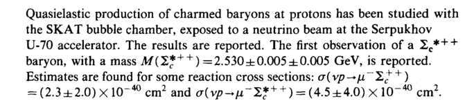 Quasielastic production of charmed baryons at protons has been studied with the SKAT bubble chamber, exposed to a neutrino beam at the Serpukhov U-70 accelerator. The results are reported. The first observation of a 2C* + + baryon, with a mass Af(2?+ + ) =2.530±0.005±0.005 GeV, is reported. Estimates are found for some reaction cross sections: σ(ν/?-*μ~Σίι~ + ) = (2.3±2.0)XlO-40cm2 and σ(ν/>-μ~Σ*+ + ) = (4.5±4.0) Χ 10"40 cm2.
