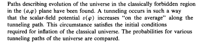 Paths describing evolution of the universe in the classically forbidden region in the {α,φ) plane have been found. A tunneling occurs in such a way that the scalar-field potential ν(φ) increases "on the average" along the tunneling path. This circumstance satisfies the initial conditions required for inflation of the classical universe. The probabilities for various tunneling paths of the universe are compared.