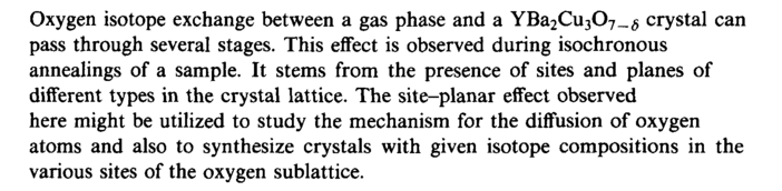 Oxygen isotope exchange between a gas phase and Á õ÷Á2óÉ307_Ê crystal can pass through several stages. This effect is observed during isochronous annealings of a sample. It stems from the presence of sites and planes of different types in the crystal lattice. The site-planar effect observed here might be utilized to study the mechanism for the diffusion of oxygen atoms and also to synthesize crystals with given isotope compositions in the various sites of the oxygen sublattice.