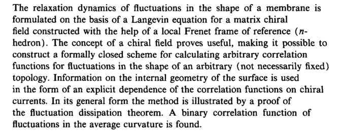 The relaxation dynamics of fluctuations in the shape of a membrane is formulated on the basis of a Langevin equation for a matrix chiral field constructed with the help of a local Frenet frame of reference (n-hedron). The concept of a chiral field proves useful, making it possible to construct a formally closed scheme for calculating arbitrary correlation functions for fluctuations in the shape of an arbitrary (not necessarily fixed) topology. Information on the internal geometry of the surface is used in the form of an explicit dependence of the correlation functions on chiral currents. In its general form the method is illustrated by a proof of the fluctuation dissipation theorem. A binary correlation function of fluctuations in the average curvature is found.