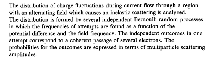 The distribution of charge fluctuations during current flow through a region with an alternating field which causes an inelastic scattering is analyzed. The distribution is formed by several independent Bernoulli random processes in which the frequencies of attempts are found as a function of the potential difference and the field frequency. The independent outcomes in one attempt correspond to a coherent passage of several electrons. The probabilities for the outcomes are expressed in terms of multiparticle scattering amplitudes.