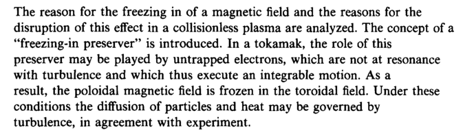The reason for the freezing in of a magnetic field and the reasons for the disruption of this effect in a collisionless plasma are analyzed. The concept of a "freezing-in preserver" is introduced. In a tokamak, the role of this preserver may be played by untrapped electrons, which are not at resonance with turbulence and which thus execute an integrable motion. As a result, the poloidal magnetic field is frozen in the toroidal field. Under these conditions the diffusion of particles and heat may be governed by turbulence, in agreement with experiment.