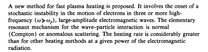 A new method for fast plasma heating is proposed. It involves the onset of a stochastic instability in the motion of electrons in three or more high-frequency {ω^ωρ), large-amplitude electromagnetic waves. The elementary resonant mechanism for the wave-particle interaction is normal (Compton) or anomalous scattering. The heating rate is considerably greater than for other heating methods at a given power of the electromagnetic radiation.