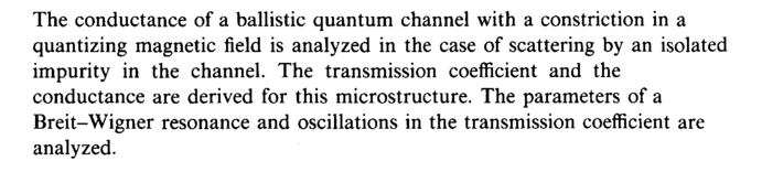 The conductance of a ballistic quantum channel with a constriction in a quantizing magnetic field is analyzed in the case of scattering by an isolated impurity in the channel. The transmission coefficient and the conductance are derived for this microstructure. The parameters of a Breit-Wigner resonance and oscillations in the transmission coefficient are analyzed.