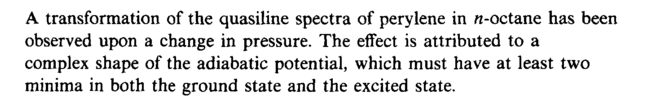 A transformation of the quasiline spectra of perylene in и-octane has been observed upon a change in pressure. The effect is attributed to a complex shape of the adiabatic potential, which must have at least two minima in both the ground state and the excited state.