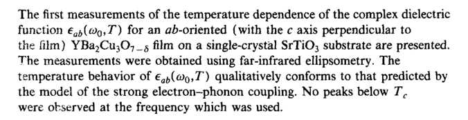 The first measurements of the temperature dependence of the complex dielectric function €ab{coQlT) for an a£-oriented (with the с axis perpendicular to the film) YBa2Cu307_5 film on a single-crystal SrTi03 substrate are presented. The measurements were obtained using far-infrared ellipsometry. The temperature behavior of eab(o)QtT) qualitatively conforms to that predicted by the model of the strong electron-phonon coupling. No peaks below Tc were observed at the frequency which was used.
