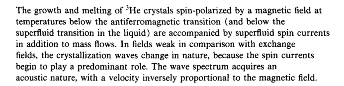 The growth and melting of He crystals spin-polarized by a magnetic field at temperatures below the antiferromagnetic transition (and below the superfluid transition in the liquid) are accompanied by superfluid spin currents in addition to mass flows. In fields weak in comparison with exchange fields, the crystallization waves change in nature, because the spin currents begin to play a predominant role. The wave spectrum acquires an acoustic nature, with a velocity inversely proportional to the magnetic field.