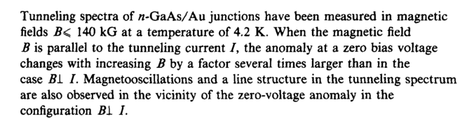 Tunneling spectra of л-GaAs/Au junctions have been measured in magnetic fields B< 140 kG at a temperature of 4.2 K. When the magnetic field В is parallel to the tunneling current /, the anomaly at a zero bias voltage changes with increasing В by a factor several times larger than in the case Bi I. Magnetooscillations and a line structure in the tunneling spectrum are also observed in the vicinity of the zero-voltage anomaly in the configuration Βϊ I.
