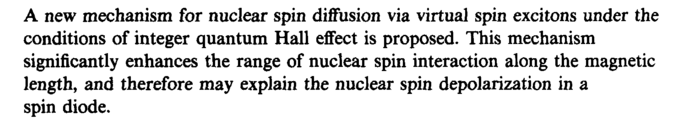 A new mechanism for nuclear spin diffusion via virtual spin excitons under the conditions of integer quantum Hall effect is proposed. This mechanism significantly enhances the range of nuclear spin interaction along the magnetic length, and therefore may explain the nuclear spin depolarization in a spin diode.