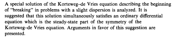 A special solution of the Korteweg-de Vries equation describing the beginning of "breaking" in problems with a slight dispersion is analyzed. It is suggested that this solution simultaneously satisfies an ordinary differential equation which is the steady-state part of the symmetry of the Korteweg-de Vries equation. Arguments in favor of this suggestion are presented.