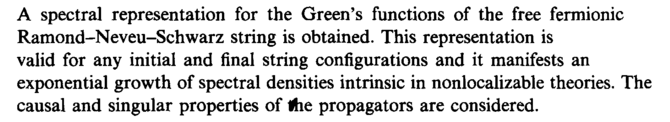 A spectral representation for the Green's functions of the free fermionic Ramond-Neveu-Schwarz string is obtained. This representation is valid for any initial and final string configurations and it manifests an exponential growth of spectral densities intrinsic in nonlocalizable theories. The causal and singular properties of Йхе propagators are considered.