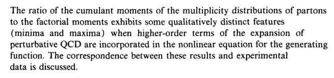 The ratio of the cumulant moments of the multiplicity distributions of partons to the factorial moments exhibits some qualitatively distinct features (minima and maxima) when higher-order terms of the expansion of perturbative QCD are incorporated in the nonlinear equation for the generating function. The correspondence between these results and experimental data is discussed.