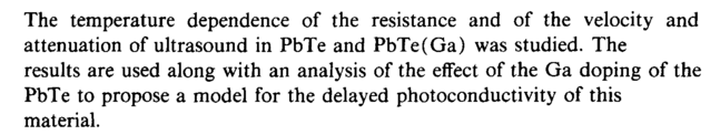 The temperature dependence of the resistance and of the velocity and attenuation of ultrasound in PbTe and PbTe(Ga) was studied. The results are used along with an analysis of the effect of the Ga doping of the PbTe to propose a model for the delayed photoconductivity of this material.
