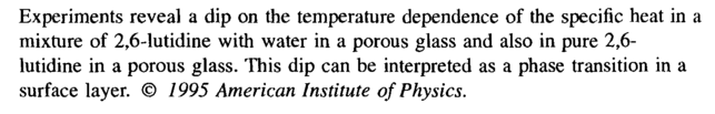 Experiments reveal a dip on the temperature dependence of the specific heat in mixture of 2,6-lutidine with water in a porous glass and also in pure 2,6-lutidine in a porous glass. This dip can be interpreted as a phase transition in a surface layer. © 1995 American Institute of Physics.