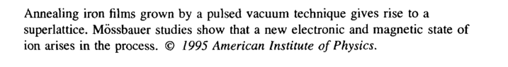 Annealing iron films grown by a pulsed vacuum technique gives rise to a superlattice. Mossbauer studies show that a new electronic and magnetic state of ion arises in the process. © 1995 American Institute of Physics.