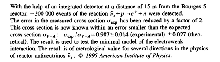 Vyrodov V. N. , Declais Y., de Kerret H. , Kozlov Yu. V. , Lefievre B., Martem'yanov V. P. , Machulin I. N., Mikaelyan L. A. , Obolensky M. S. , Skorokhvatov M. D. , Sukhotin S. V. , Etenko A. V.