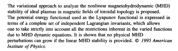 The variational approach to analyze the nonlinear magnetohydrodynamic (MHD) stability of ideal plasmas in magnetic fields of toroidal topology is proposed. The potential energy functional used as the Lyapunov functional is expressed in terms of a complete set of independent Lagrangian invariants, which allows one to take strictly into account all the restrictions inherent in the varied functions due to MHD dynamic equations. It is shown that no physical MHD perturbations can grow if the linear MHD stability is provided. © 1995 American Institute of Physics.