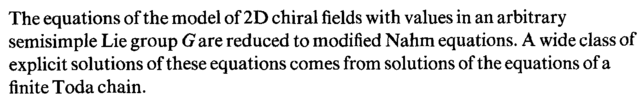 The equations of the model of 2D chiral fields with values in an arbitrary semisimple Lie group G are reduced to modified Nahm equations. A wide class of explicit solutions of these equations comes from solutions of the equations of a finite Toda chain.