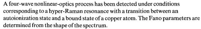 A four-wave nonlinear-optics process has been detected under conditions corresponding to a hyper-Raman resonance with a transition between an autoionization state and a bound state of a copper atom. The Fano parameters are determined from the shape of the spectrum.