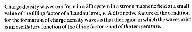 Charge density waves can form in a 2D system in a strong magnetic field at a small value of the filling factor of a Landau level, v. A distinctive feature of the condition for the formation of charge density waves is that the region in which the waves exist is an oscillatory function of the filling factor ν and of the temperature.
