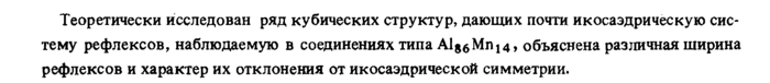 Теоретически исследован ряд кубических структур, дающих почти икосаэдрическую систему рефлексов, наблюдаемую в соединениях типа Al^Mn^, объяснена различная ширина рефлексов и характер их отклонения от икосаэдрической симметрии.
