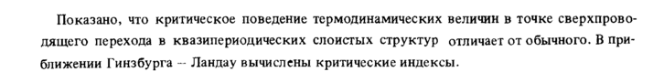 Показано, что критическое поведение термодинамических величин в точке сверхпроводящего перехода в квазипериодических слоистых структур отличает от обычного. В приближении Гинзбурга — Ландау вычислены критические индексы.