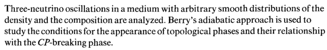 Three-neutrino oscillations in a medium with arbitrary smooth distributions of the density and the composition are analyzed. Berry's adiabatic approach is used to study the conditions for the appearance of topological phases and their relationship with the CP-breaking phase.