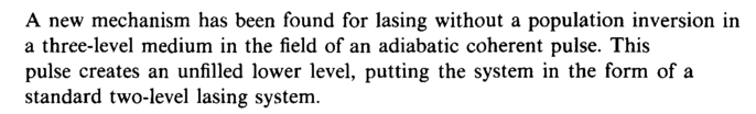A new mechanism has been found for lasing without a population inversion in a three-level medium in the field of an adiabatic coherent pulse. This pulse creates an unfilled lower level, putting the system in the form of a standard two-level lasing system.