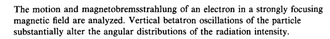 The motion and magnetobremsstrahlung of an electron in a strongly focusing magnetic field are analyzed. Vertical betatron oscillations of the particle substantially alter the angular distributions of the radiation intensity.
