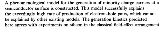 A phenomenological model for the generation of minority charge carriers at a semiconductor surface is constructed. This model successfully explains the exceedingly high rate of production of electron-hole pairs, which cannot be explained by other existing models. The generation kinetics predicted here agrees with experiments on silicon in the classical field-effect arrangement.