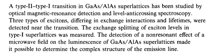 A type-II-type-I transition in GaAs/AlAs superlattices has been studied by optical magnetic-resonance detection and level-anticrossing spectroscopy. Three types of excitons, differing in exchange interactions and lifetimes, were detected near the transition. The exchange splitting of exciton levels in type-I superlattices was measured. The detection of a nonresonant effect of a microwave field on the luminescence of GaAs/AlAs superlattices made it possible to determine the complex structure of the emission line.