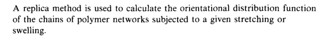A replica method is used to calculate the orientational distribution function of the chains of polymer networks subjected to a given stretching or swelling.