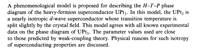 A phenomenological model is proposed for describing the H-T-P phase diagram of the heavy-fermion superconductor UPt3. In this model, the UPt3 is a nearly isotropic J-wave superconductor whose transition temperature is split slightly by the crystal field. This model agrees with all known experimental data on the phase diagram of UPt3. The parameter values used are close to those predicted by weak-coupling theory. Physical reasons for such isotropy of superconducting properties are discussed.
