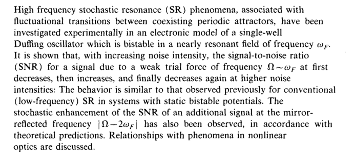 Dykman M. I. , Luchinsky D. G. , Mannella R., P. McClintock V. E., Stein N. D. , Stocks N. G.