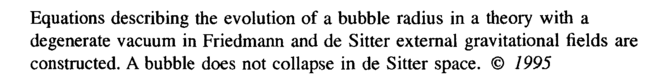 Equations describing the evolution of a bubble radius in a theory with a degenerate vacuum in Friedmann and de Sitter external gravitational fields are constructed. A bubble does not collapse in de Sitter space. © 1995