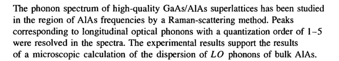 The phonon spectrum of high-quality GaAs/AlAs superlattices has been studied in the region of AlAs frequencies by a Raman-scattering method. Peaks corresponding to longitudinal optical phonons with a quantization order of 1-5 were resolved in the spectra. The experimental results support the results of a microscopic calculation of the dispersion of LO phonons of bulk AlAs.