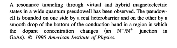 A resonance tunneling through virtual and hybrid magnetoelectric states in a wide quantum pseudowell has been observed. The pseudow-ell is bounded on one side by a real heterobarrier and on the other by a smooth drop of the bottom of the conduction band in a region in which the dopant concentration changes (an N~/N+ junction in GaAs). © 1995 American Institute of Physics.